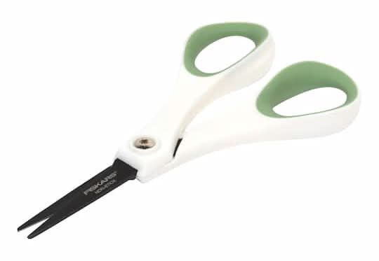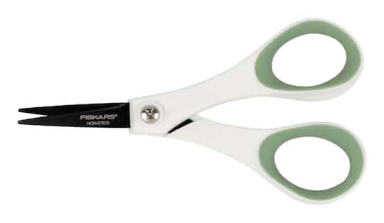 Purchase the Fiskars Nonstick Titanium Soft grip Detail Scissors at Michaels. These small, sharp, nonstick, 5” detail scissors are perfectly sized for clipping coupons, cutting out intricate shapes, quick snips and more. 5" (12.7 cm) length. Feature titanium-enhanced, stainless steel blades that make clean cuts and stay sharp through heavy use . Nonstick blade coating makes it easy to cut cleanly through materials with sticky adhesives . Double-loop handle offers excellent control for right- and left-handed users, while Softgrip touchpoints help reduce hand fatigue for extended use . Ideal for cutting tight patterns and making quick snips through a wide variety of materials including paper, cardboard, tape and much more. Full Lifetime Warranty . Fiskars Nonstick Titanium Softgrip Detail Scissors Color: Gray