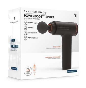 Enhance your recovery and boost your performance with the Sharper Image Powerboost Sport Percussion Massager. This versatile tool is designed to provide deep tissue massage with advanced Quiet Drive Technology, making it perfect for use in any setting. Equipped with 5 speed settings and 3 attachments, it offers everything you need for targeted muscle relief and quick recovery. With its lightweight design and 1.5-hour battery life, it’s your perfect companion for relief on the go, ensuring you're always at your physical best, no matter where life takes you.