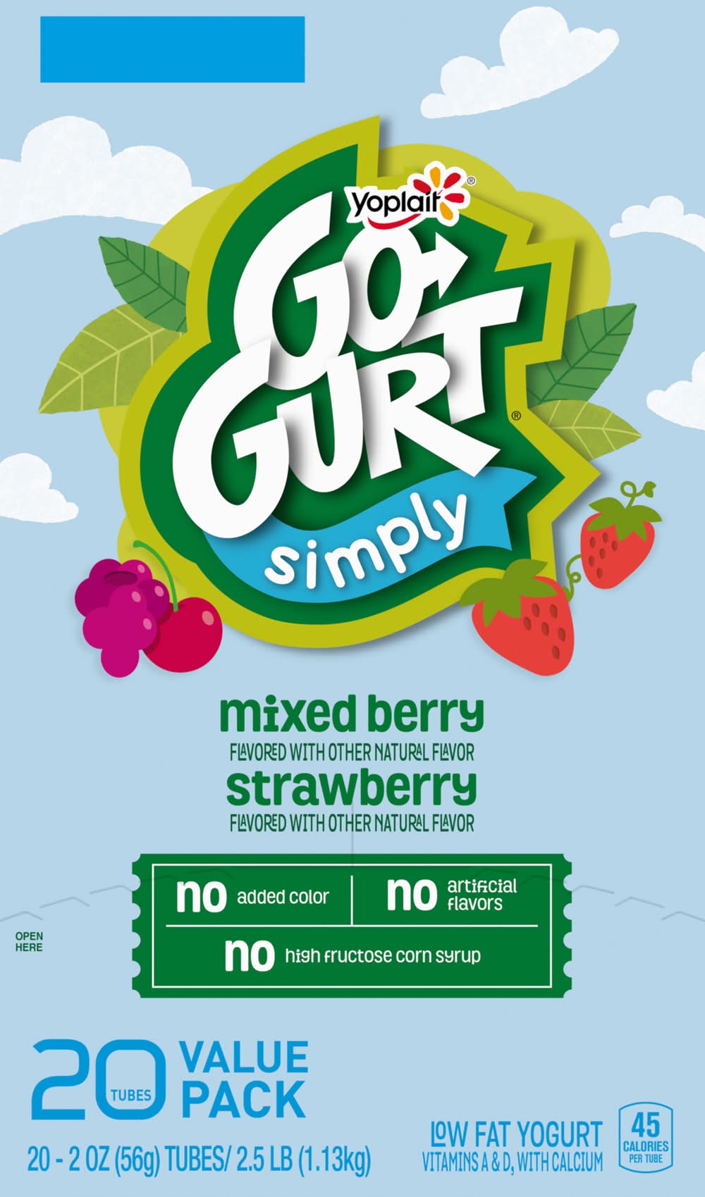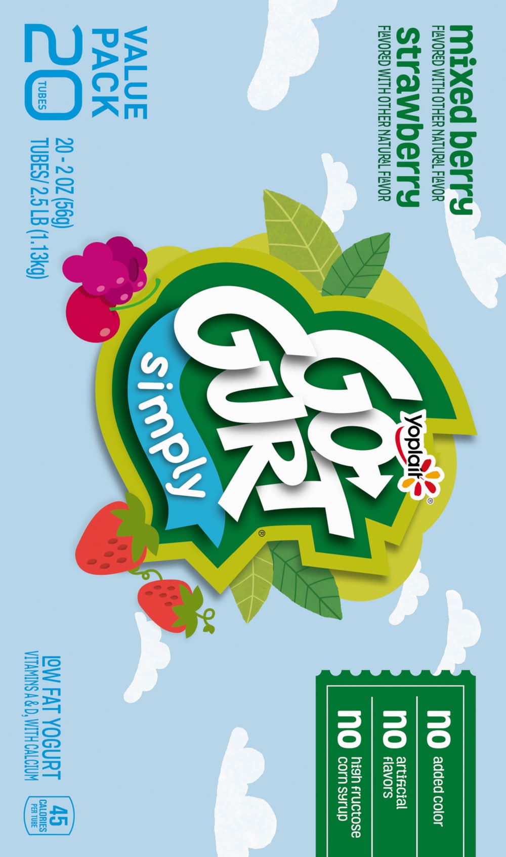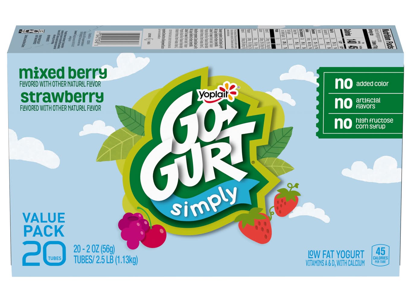 Go-Gurt Simply Strawberry & Mixed Berry Lowfat Yogurt, Strawberry and Mixed Berry (2.5 lbs, 20 ct)