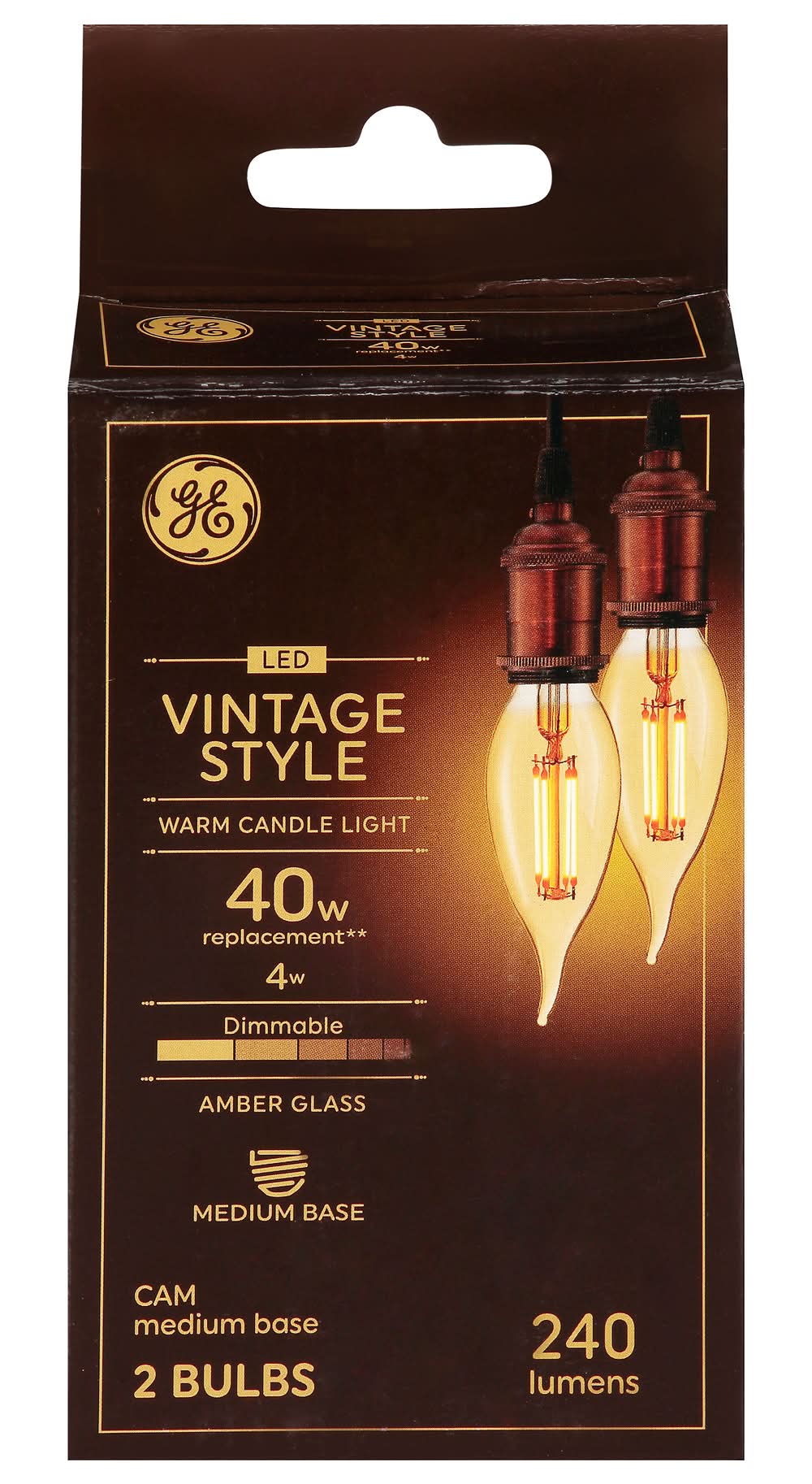 General Electric Vintage Style Led 40 W Warm Candle Light Bulbs (2 ct)