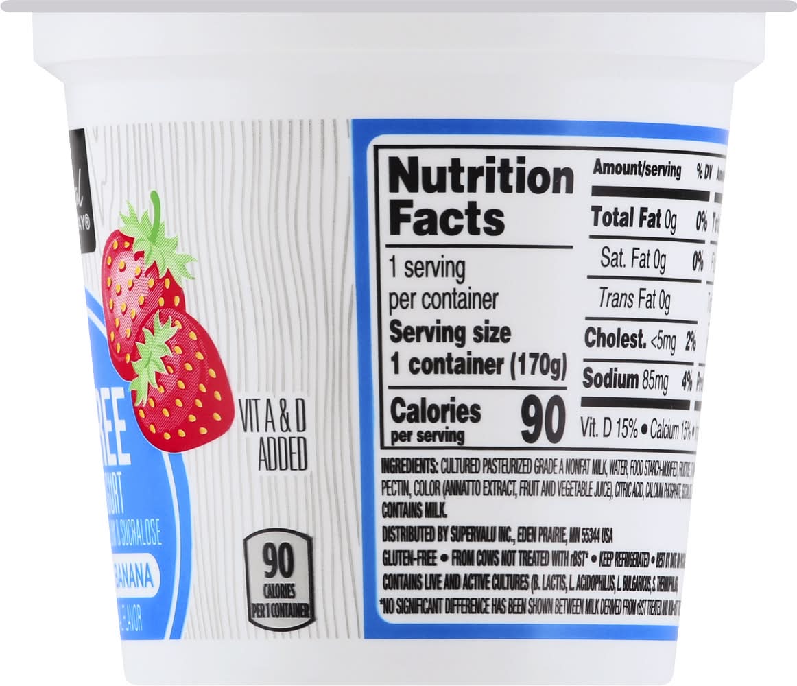 Yogurt, Fat Free, Nonfat, Strawberry Banana Supervalu,