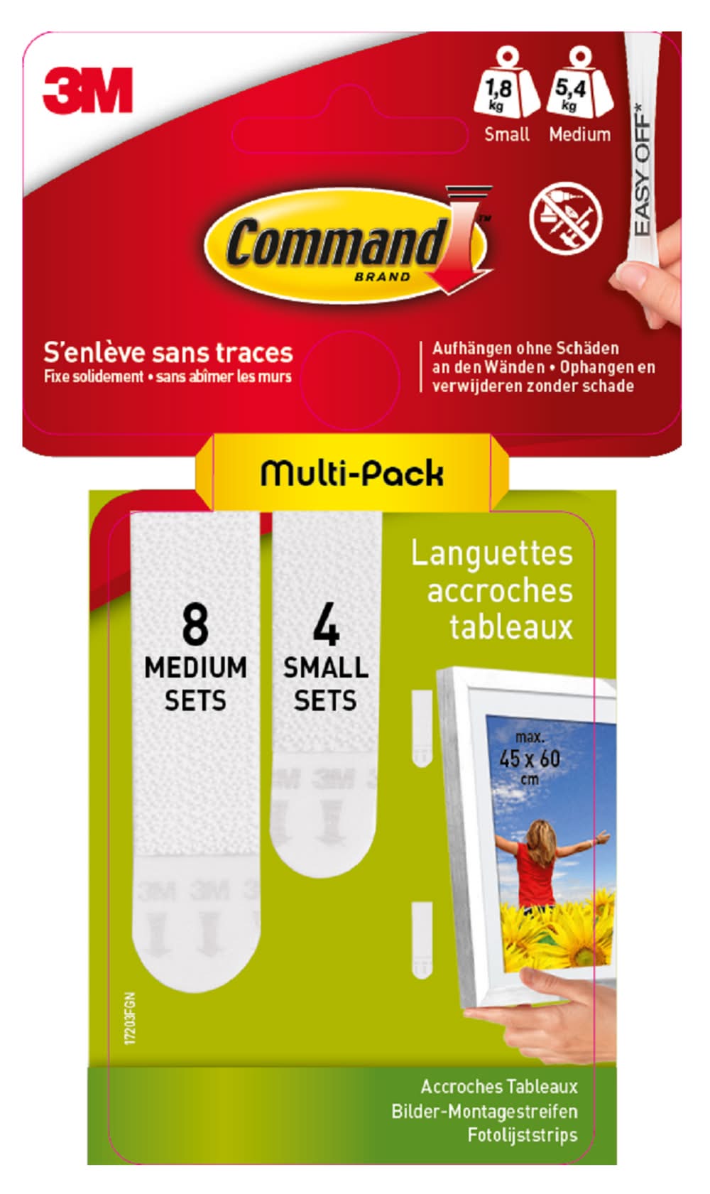 Comman - Multi pack languettes de fixation enlevable tableau 8 pm 16 mm (38g)