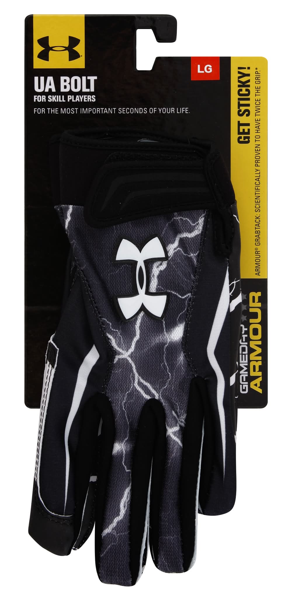 Football Gloves, Bolt, Mens LG, Black UNDER ARMOUR,