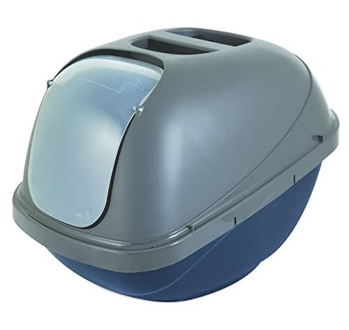 Petmate Basic Hooded Cat Litter Pan, Jumbo, Blue-Silver