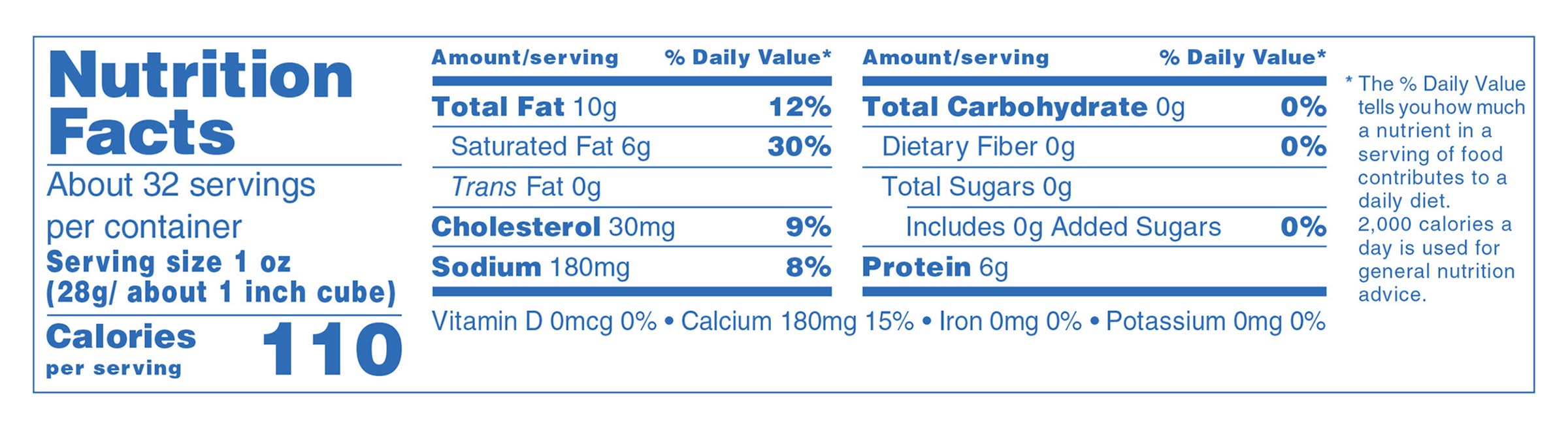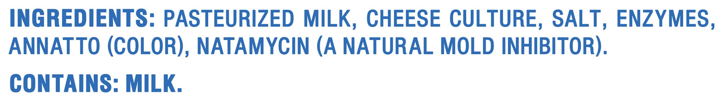 Pasteurized Milk, Cheese Culture, Salt, Enzymes, Annatto (Color), Natamycin (a Natural Mold Inhibitor) Contains: Milk