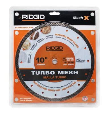 RIDGID Turbo-Mesh Rim Diamond Blades are made with the professional users in mind. These blades are engineered to provide an extremely smooth cutting finish on porcelain, marble and granite. The Mesh Rim design allows for less friction and more efficient heat dispersion for superior cutting performanc This product can expose you to chemicals including nickel, which is known to State of California to cause cancer and birth defects or other reproductive harm. For more information go to www.P65Warnings.ca.gov Size: 10 in