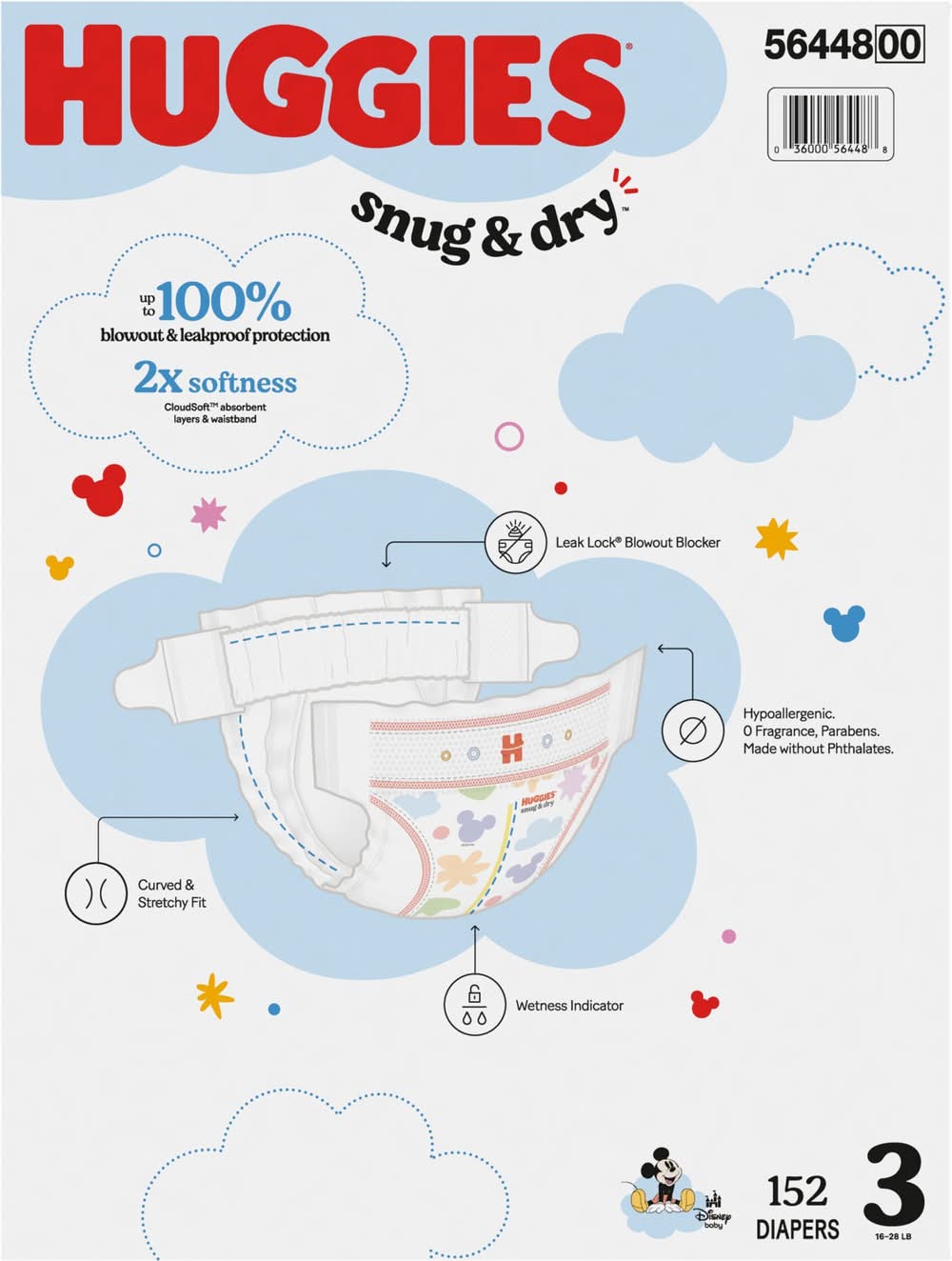 Huggies Snug & Dry Disposable Diapers, 3 Size (152 ct)