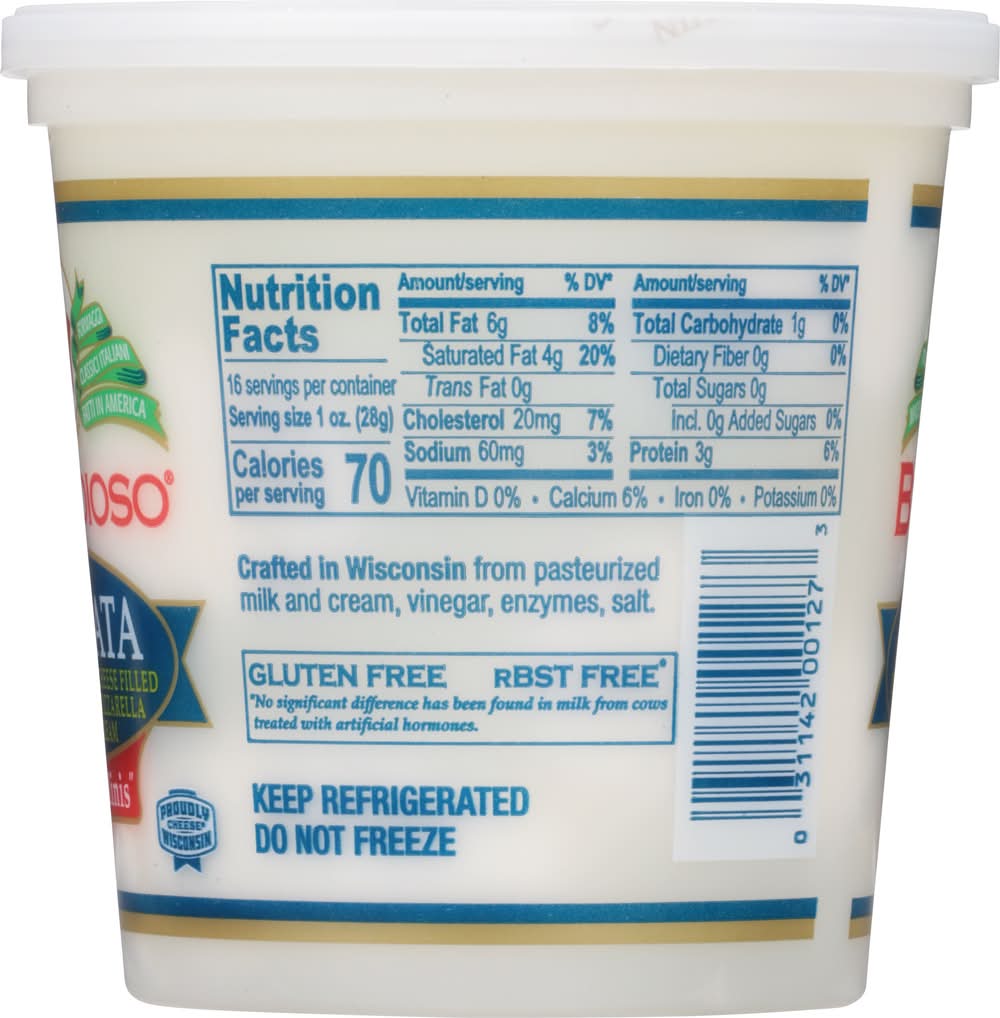 Fresh mozzarella cheese filled with shreds of mozzarella soaked in cream. Classic. Italian cheeses. Proudly Wisconsin Cheese. BelGioioso Cheese Inc.,