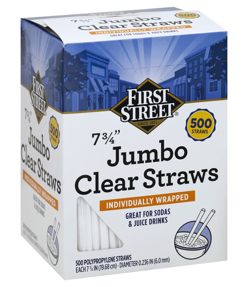 First Street Jumbo Wrapped Clear Straws (500 ct)