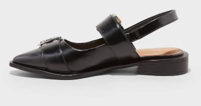 Wild Fable Peyton Double Buckle Slingback Flats With Memory Foam Insole, Women, 8, Black
