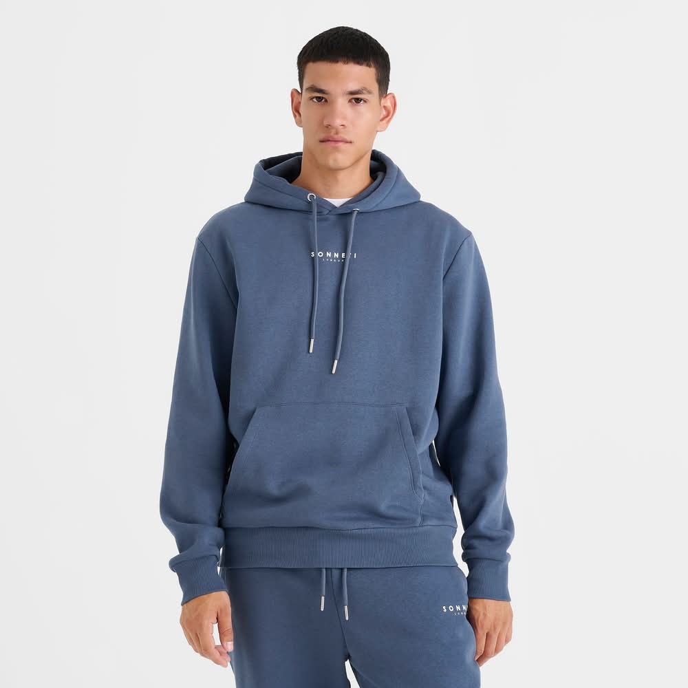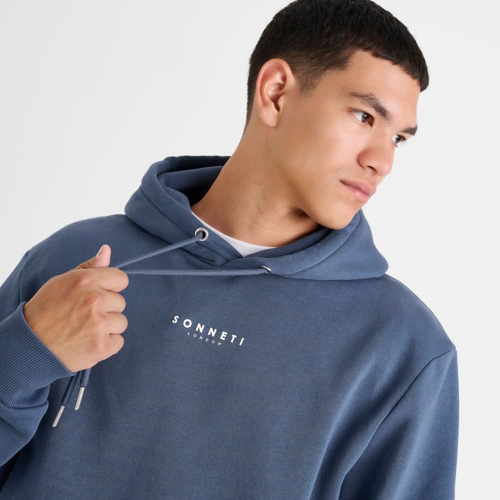 Size & fit this product uses men's sizing. Please refer to the size guide to get your best fit. Standard fit drapes the body for an athletic look product features cotton poly-blended feels luxuriously soft and smooth. Pullover-style design with a drawcord-adjustable hood. Low-key Sonneti London printed branding at the chest. Front kangaroo pocket holds your essentials. Ribbed sleeve cuffs and hem keep cold air out. 60% cotton, 40% polyester. Machine wash. Looking fresh has never been easier thanks to the Sonneti London essential hoodie ultra-cozy blended fabric, a refined and sophisticated design, and a slew of irresistible hues come together for effortless comfort and sophisticated style when it's time to layer up. • Color: Vintage indigo/white • Size: Medium • male
