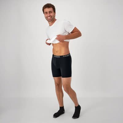 Soft, stretchy, and packed with performance features, these Hanes men's boxer briefs might just become your new go to. You'll especially appreciate the Total Support Pouch a breathable mesh liner that separates, supports, and helps prevent chafing as well as the no-ride-up leg bands. Soft and stretchable Comfort Flex Fit fabric moves with you and wicks moisture from your skin, so you stay cool and comfortable. Odor protection technology does its part to keep you feeling fresh. Available in a convenient 3pack of men's boxer brief underwear for stock up ease. • Color: Assorted • Size: Large