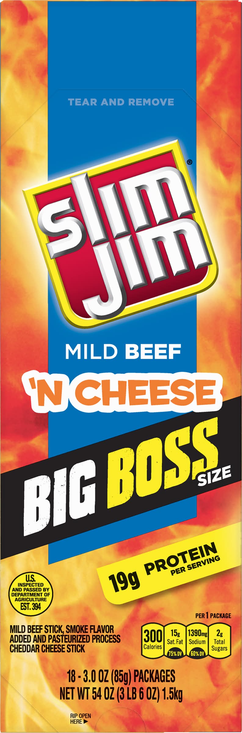 To discover the stores near you that offer Slim Jim Smoke Flavor Big Boss Size 'N Cheese Mild Beef & Cheddar Cheese Sticks on Uber Eats, start by entering your delivery address. Next, you can browse your options and find a place from which to order Slim Jim Smoke Flavor Big Boss Size 'N Cheese Mild Beef & Cheddar Cheese Sticks online.