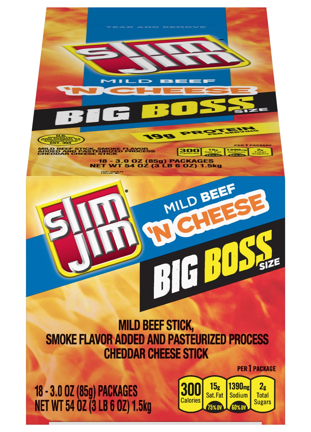 View a store’s business hours to see if it will be open late or around the time you’d like to order Slim Jim Smoke Flavor Big Boss Size 'N Cheese Mild Beef & Cheddar Cheese Sticks.