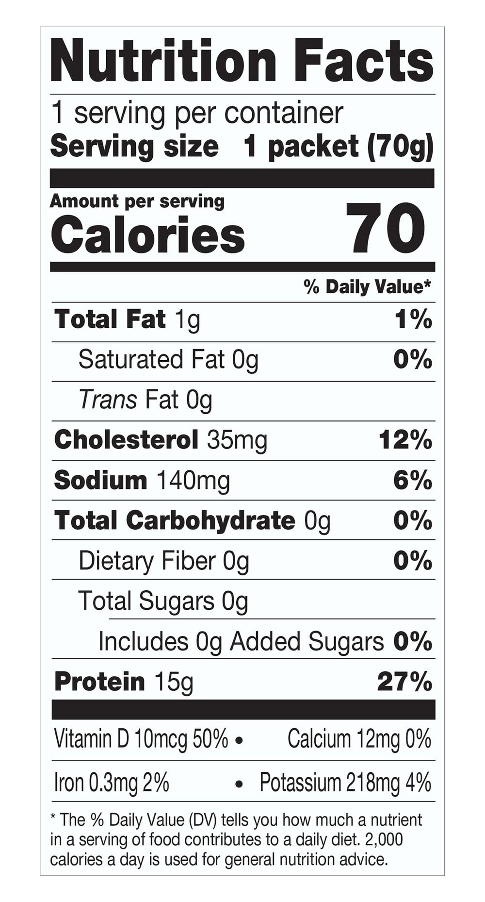 Ingredients: Pink Salmon, Spring Water, Vegetable Broth, Salt Contains: Fish, Salmon