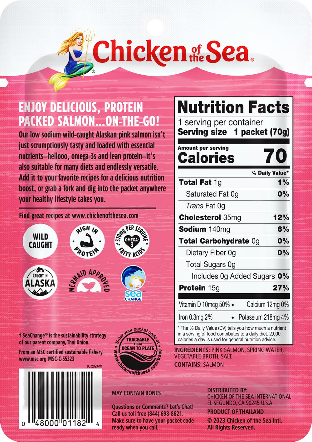 Chicken of the Sea Wild Caught Alaskan Pink Salmon in Spring Water Packet, Low Sodium 2.5 oz