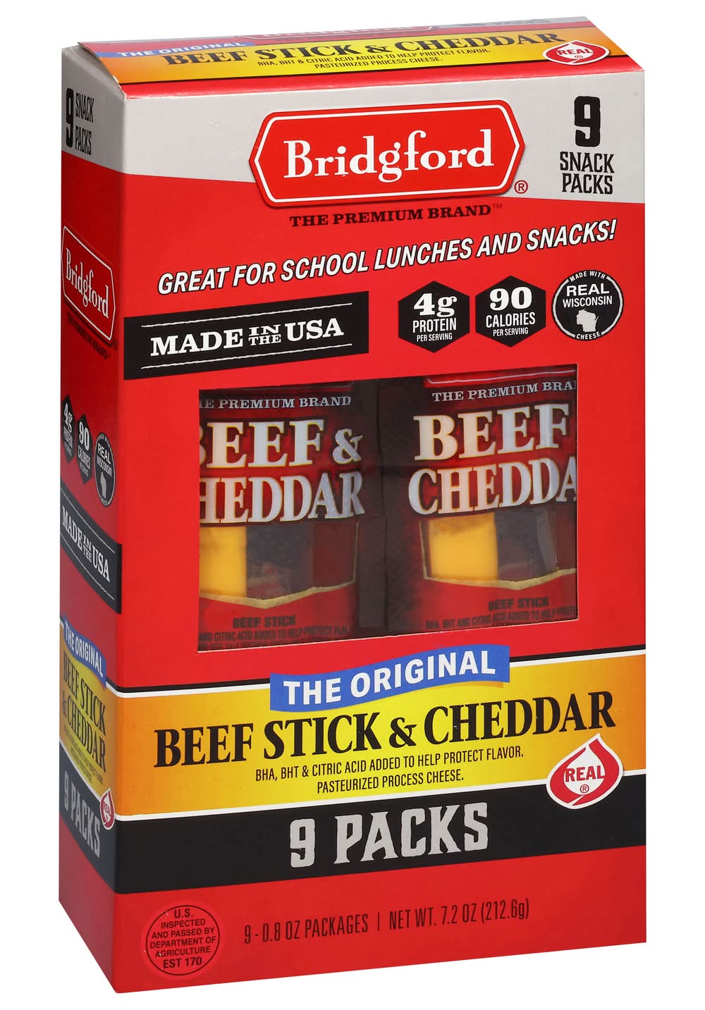 Bridgford Beef Stick & Cheddar Snack packs (7.2 oz, 9 ct)