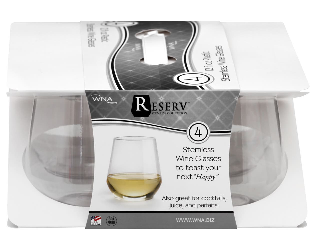 Stemless Wine Glasses, Plastic, 12 Ounces • WNA, • Packaging: Reusable