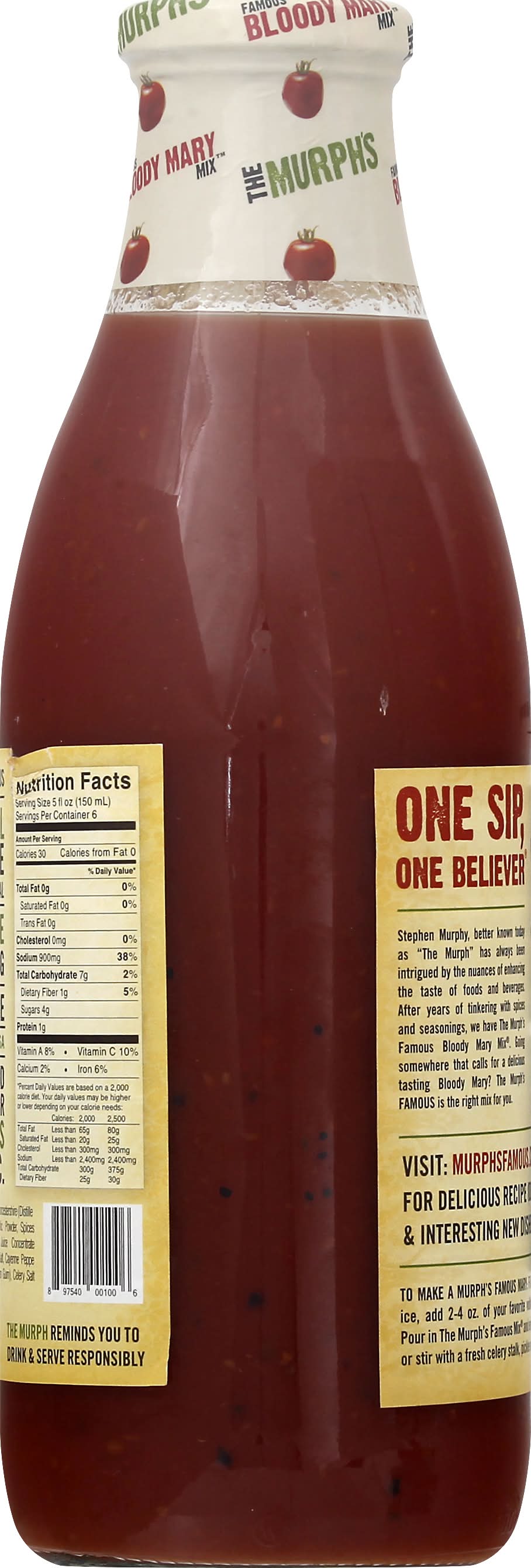 Directions for use: To Make a Murph's Famous Mary: Fill a 12-16 oz. glass with ice, add 2-4 oz of your favorite vodka, gin, tequila or rum. Pour in The Murph's Famous Mix and enjoy! Feel free to garnish or stir with a fresh celery stalk, pickle or cucumber. Refrigerate after opening. Shelf stable. Shake well before use. Separation is normal. The Murph reminds you to drink & serve responsibly. Storage recommendation: Refrigerate after opening. Shelf stable.
