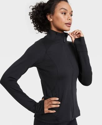 Why we’re ALL IN: This jacket features soft curves that contour to the shape of your body to move with you as you stretch and flow. A full-length zipper offers as much coverage as you like, and it's concealed by a zipper garage for comfortable wear. Thumbholes keep the sleeves in place and keep your hands warm, and the stretchy knit fabric lends a soft, smooth feel for year-round wear. Secure side-entry pockets provide safe storage and maintain a sleek shape when closed.