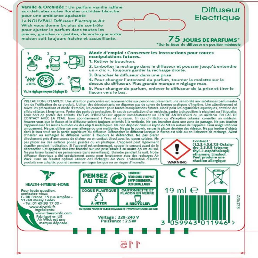 Air Wick - Diffuseur électrique avec recharge vanille et orchidée aux huiles essentielles (18g)