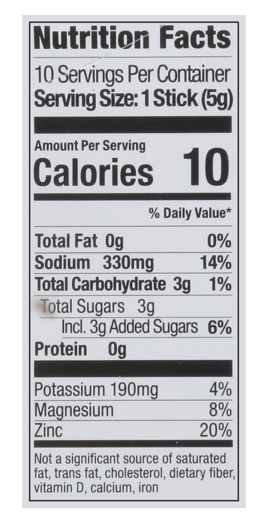 Sugar, Sodium Citrate, Salt, Potassium Chloride, Dextrose, Natural Mango Flavor, Magnesium Citrate, Malic Acid, Citric Acid, Natural Flavor, Annatto and Turmeric (Color), Steviol Glycosides, Zinc Sulfate Contains: None Additives: None