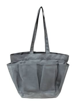 Keep all of your bath and shower accessories organized and in one place with the Mesh Shower Caddy from Room Essentials. Made from a lightweight fabric with a mesh bottom and exterior pockets that help it dry quickly, this shower caddy tote makes it easy to find and reach your bath and shower accessories. The spacious main compartment provides ample space for large bath accessories like shampoo, towels and brushes, while the multiple mesh pockets on the exterior come in handy to keep small items within reach. Plus, the two shoulder straps make carrying easy and can also be used to hang it up to dry. This portable bath shower caddy keeps all of your bath accessories organized and in one place with a chic and functional design. Color: Gray
