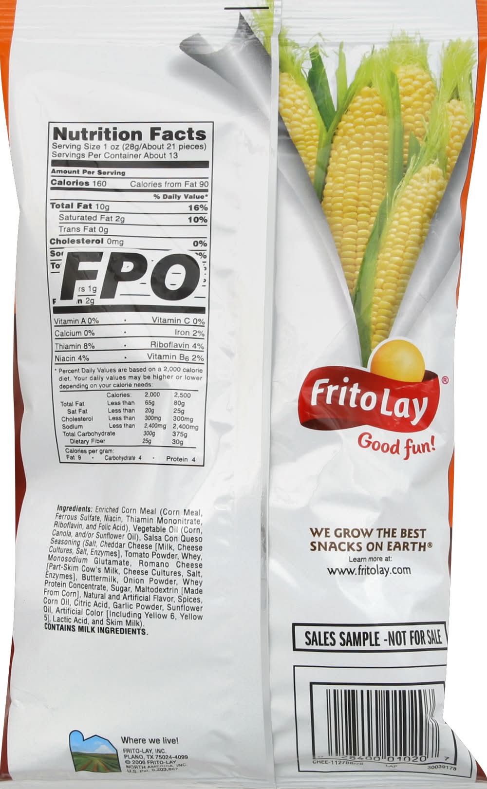 Enriched Corn Meal (Corn Meal, Ferrous Sulfate, Niacin, Thiamin Mononitrate, Riboflavin, and Folic Acid), Vegetable Oil (Contains One or More of the Following: Corn, Cottonseed, Partially Hydrogenated [Cottonseed, Soybean, or Sunflower], or Hydrogenated [Corn or Cottonseed] Oil), Whey, Salt, Cheddar Cheese (Cultured Milk, Salt, Enzymes), Autolyzed Yeast, Sugar, Monosodium Glutamate, Citric Acid, Whey, Artificial Colors (Red 40 Lake, Yellow 6 Lake, Yellow 5 and Yellow 6), Buttermilk, Hydrolyzed Soy Protein, Natural Flavors, Maltodextrin, Modified Food Starch, Onion Powder, Disodium Phosphate, Garlic Powder, Disodium Insinuate, and Disodium Guanylate