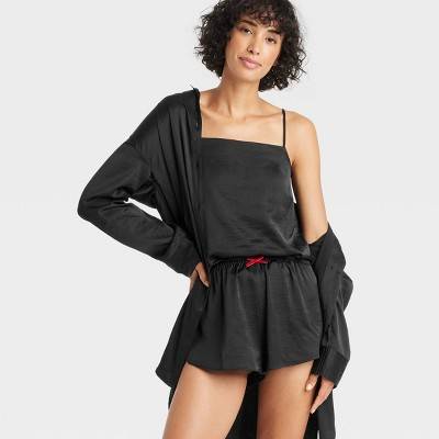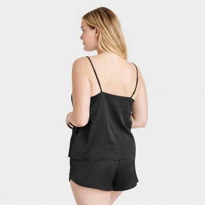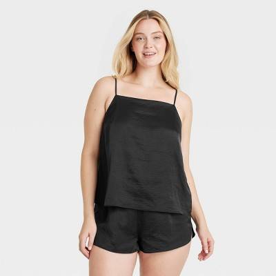 Auden Women's Satin Cami Top and Shorts Pajama Set, M, Black