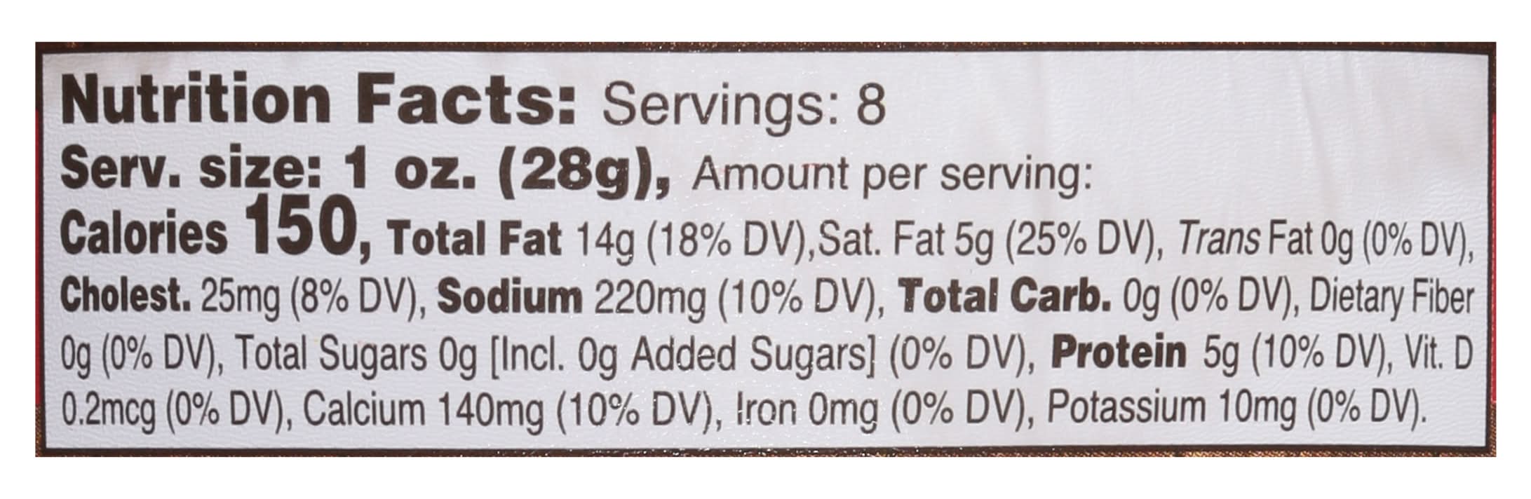 Gouda Cheese (Part Skim Milk, Cultures, Salt, Enzymes, Annatto for Color) Mayonnaise (Soybean Oil, Whole Eggs, Egg Yolks, Distilled Vinegar, Water, Natural and Artificial Flavors, Sugar, Lemon Juice Concentrate, Onion Powder, Garlic Powder, Calcium Disodium EDTA [to Protect Quality]) Contains: Milk, Soybeans, Eggs