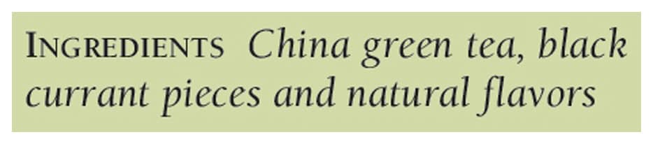 China Green Tea, Black Currant Pieces and Natural Flavors