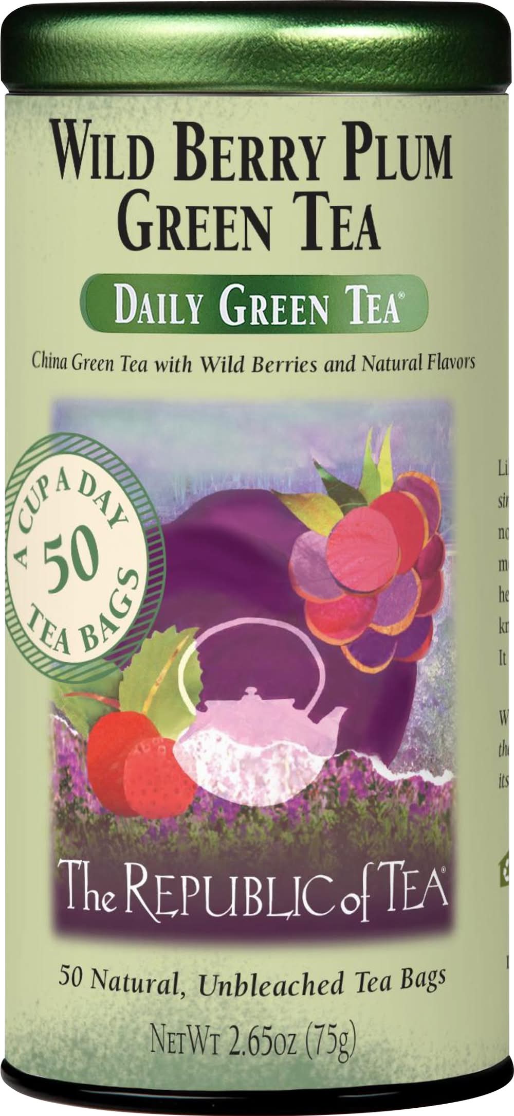 The Republic of Tea Daily Green Tea Bags, Wild Berry Plum (2.65 oz, 50 ct)
