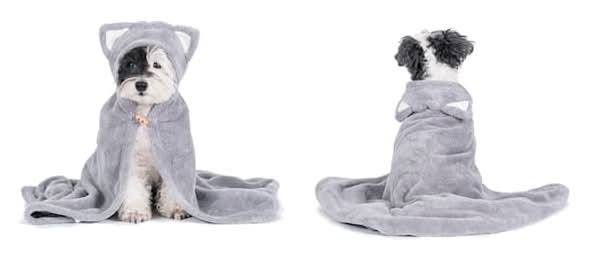 Pets So Good Animal Hood Cat Print Dog Towel, Medium, Gray
