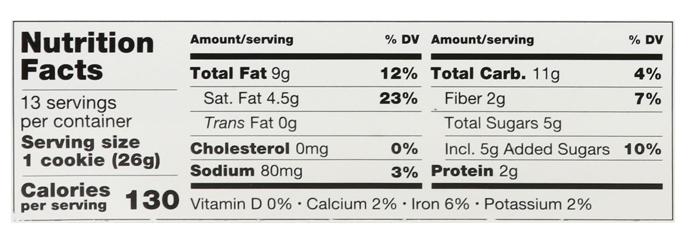 Almond Flour, Organic Maple Syrup, Chocolate Morsels (Unsweetened Chocolate, Cane Sugar, Cocoa Butter), Organic Coconut Oil, Arrowroot Flour, Organic Cocoa Powder, Organic Vanilla Extract, Baking Soda, Sea Salt. Contains: Tree Nuts, Almonds, Tree Nuts, Coconuts, Peanuts, Eggs, Soybeans, Milk, Gluten Additives: None