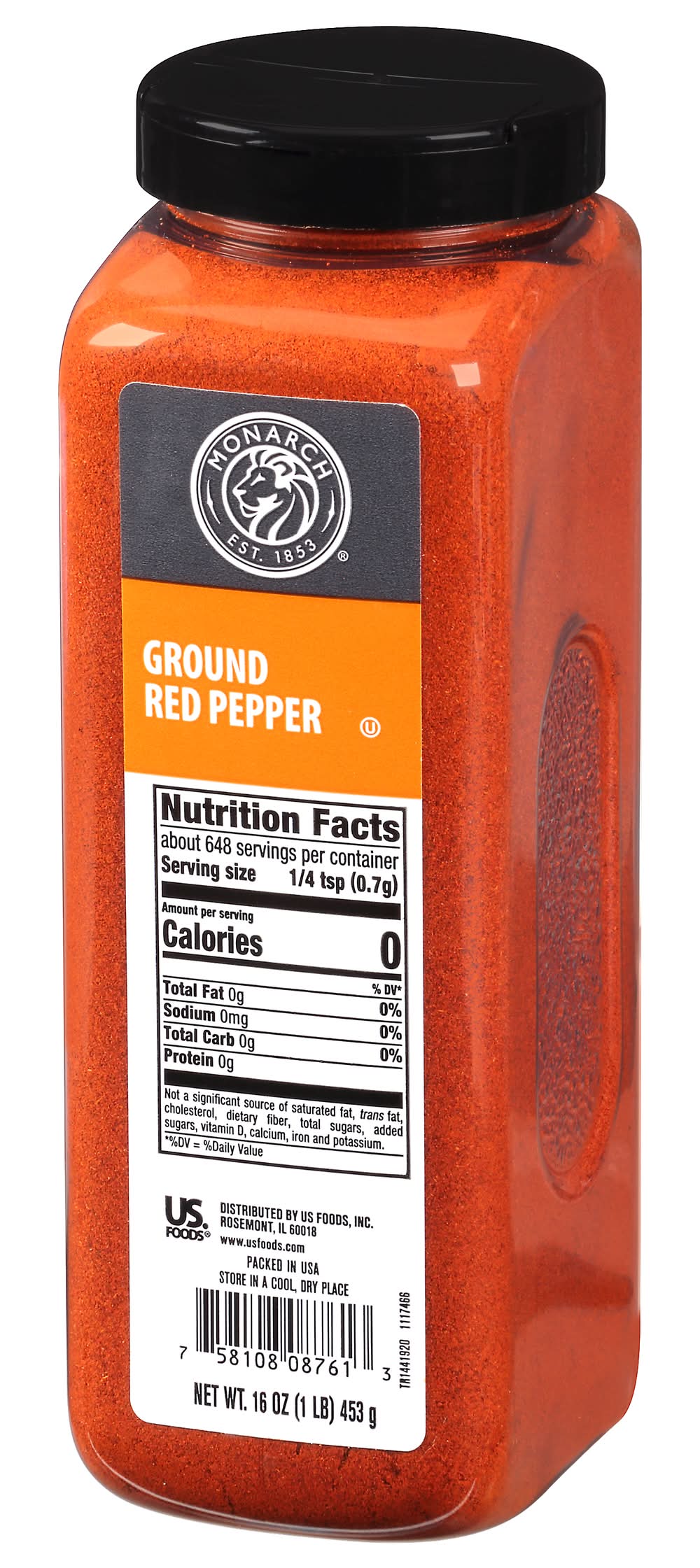 Red Pepper, Ground • Us Foods, Inc., • Packaging: Reusable