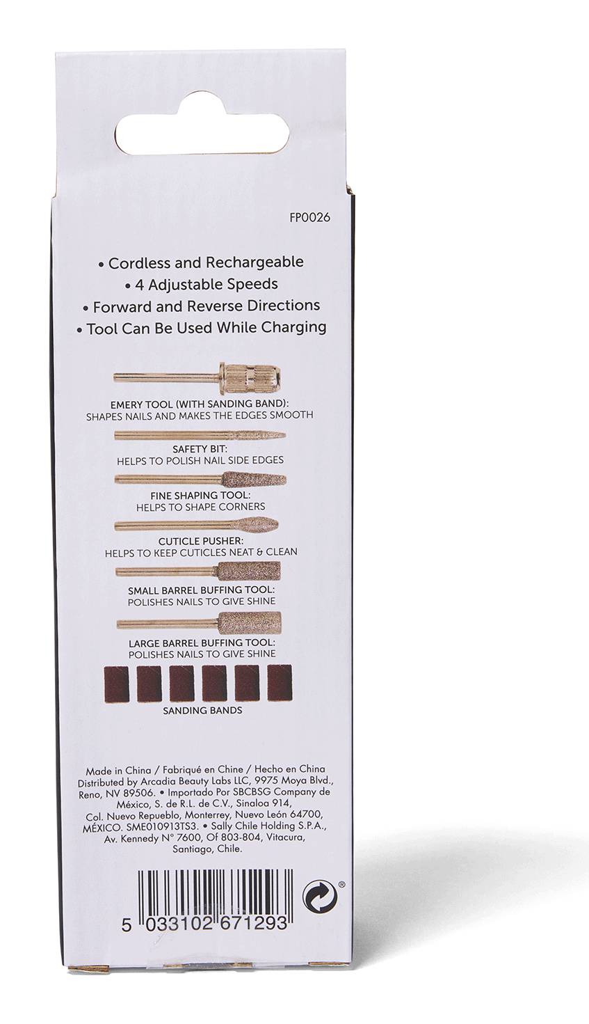 This multi-purpose drill comes with 6 metal drill bits, and 6 sanding bands to help you file, shape, smooth and polish your nails anywhere. Package Includes: Emery Tool (with sanding bands): shapes nails and makes the edges smooth. Great to help remove gel top coat, dip powder, and acrylic. Packaging: Reusable
