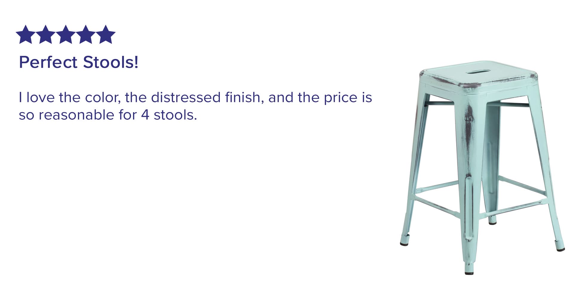 Flash Furniture Kai Commercial Grade High Backless Metal Counter Height Stool, 24 in, Distressed Green-Blue