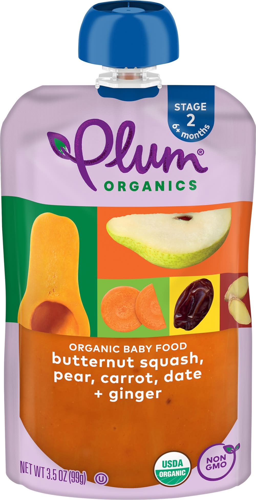 Stage 2 Organic Butternut Squash, Pear, Carrot, Date & Ginger 3.5oz Pouch Plum, PBC,