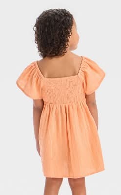 Add a dash of cuteness and superb comfort to your kid's closet with this Gold Striped Short-Sleeve DressThe gold striped dress features a square neck smocked upper, with soft gathers on the waist and raglan short-sleeves for added style. Crafted from cotton-blend gauze fabric with lining for all-day comfortable wear, this short-sleeve dress has a side pocket to stash toys and other small items. Help them pair it with their favorite accessories for versatile wear.