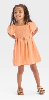 Cat & Jack Girls' Gold Striped Short Sleeve Dress, 3T, Peach Orange