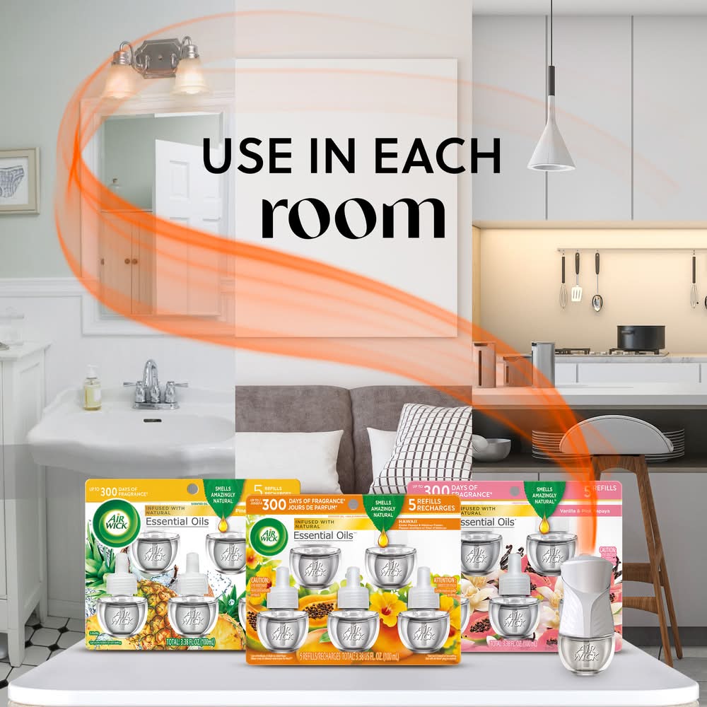- Related ProductsFebreze Plug Air Freshener Refills, Gain Original (2 x 0.87 fl oz)Glade Vanilla Passion Fruit & Hawaiian Breeze Scented Oil Refills (1.34 fl oz)Air Wick Essential Oils Fresh Linen Scented Oil Refills Essential Oils Fresh Linen Scented Oil Refills (2 ct)Febreze Plug Air Freshener Scented Oil Refill, Linen-Sky (2 x 0.87 fl oz)