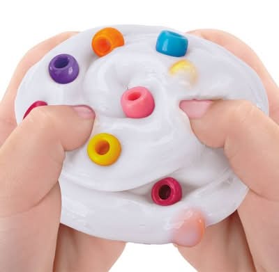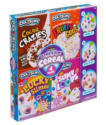 Each pre-made scented slime comes ready to customize with fun mix-ins like rainbow pony beads, glitter flakes, foam balls, and adorable cereal-themed puffy charms. Kids can stretch, squish, and swirl their slime to create colorful, textured creations that look almost good enough to eat (but don't!). This mess-free set is perfect for gifting, party activities, or anytime sensory fun. Packed in four mini cereal-style bowls, it's a satisfying treat for slime lovers of all ages. Scent: Cocoa Crazies, Fruity Goods, Lucky Slimes, Slimy Loops.
