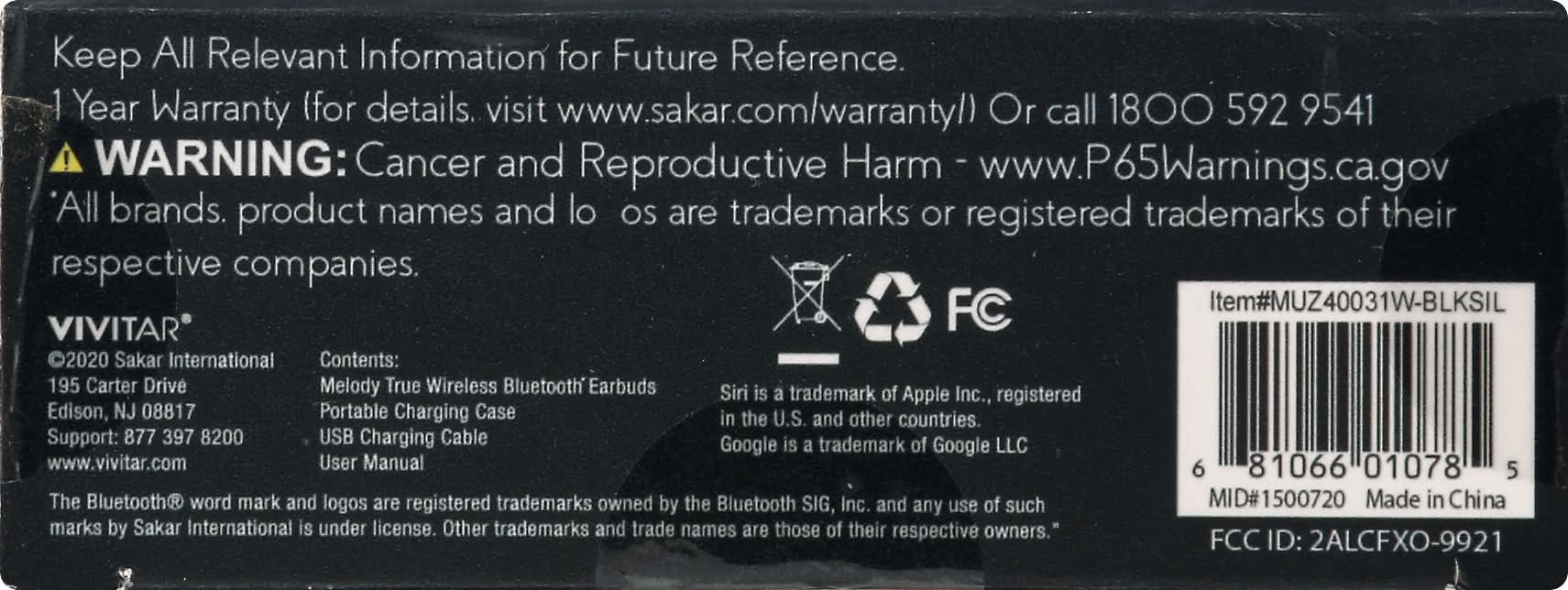 Earbuds, Bluetooth, True Wireless • Sakar International, • Packaging: Reusable