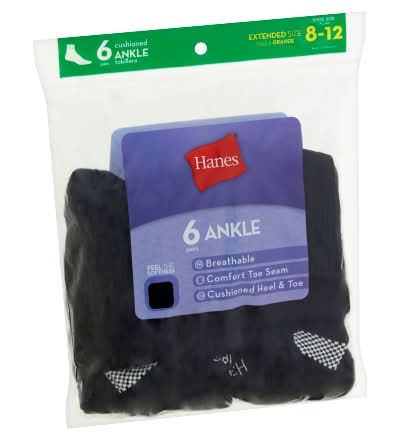 Hanes Cushioned Ankle Socks, 8-12, Black-White (6 ct)
