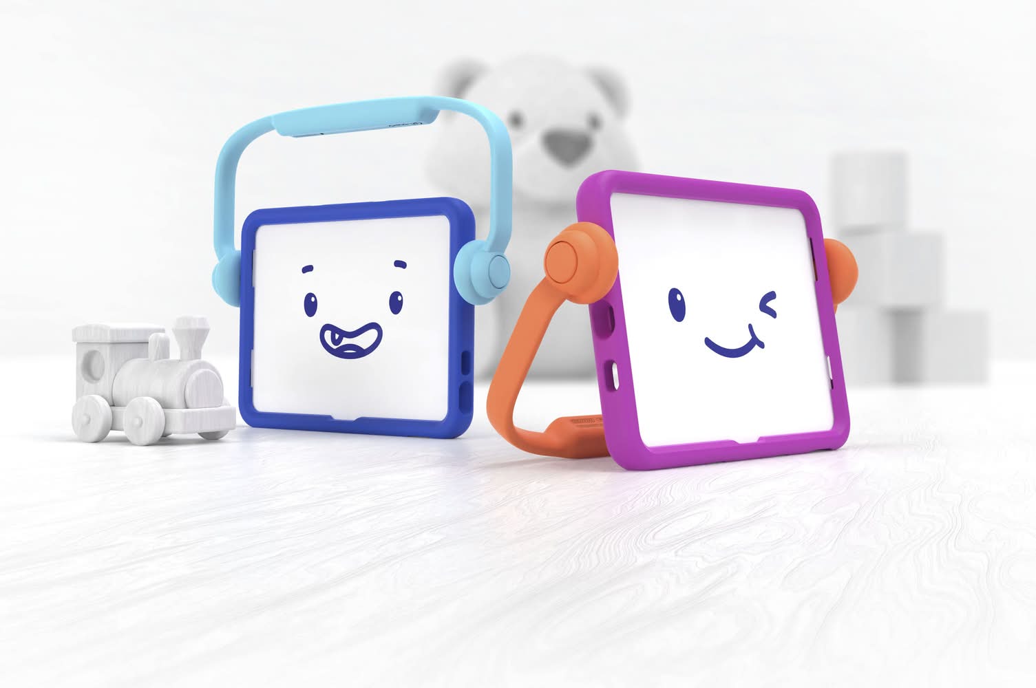Our playful tablet case provides hours of hands-free entertainment in the car and at home. Made from child safe EVA with Microban antimicrobial protection, it’s protected against drops up to 6 feet. Color: Charge blue/brave blue