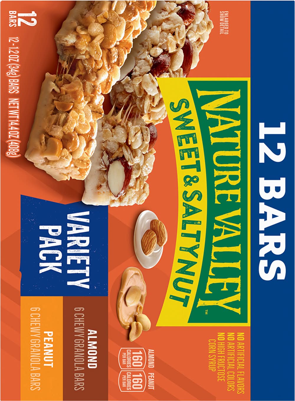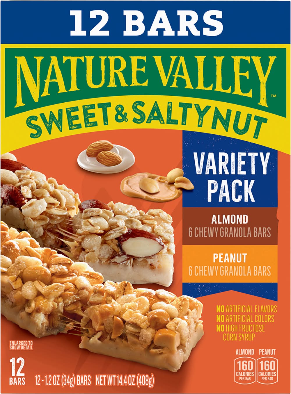 Nature Valley Variety pack Sweet & Salty Nut Granola Bars, Almond & Peanut (1.2 oz, 12 ct)