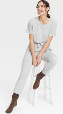 Auden Cooling Jersey Jogger Pajama Pant, Women, L, Gray