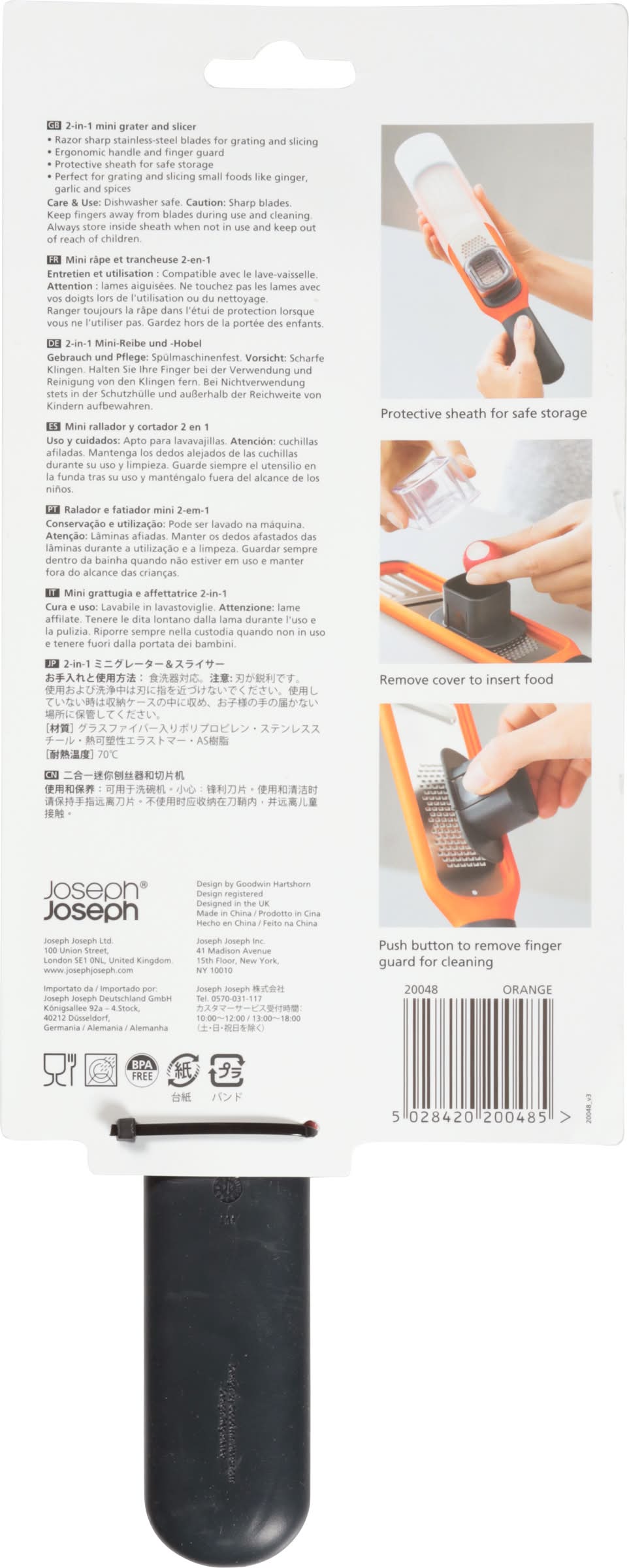 Joseph Joseph Handi-Grate 2-in-1 Mini Grater and Slicer, Orange