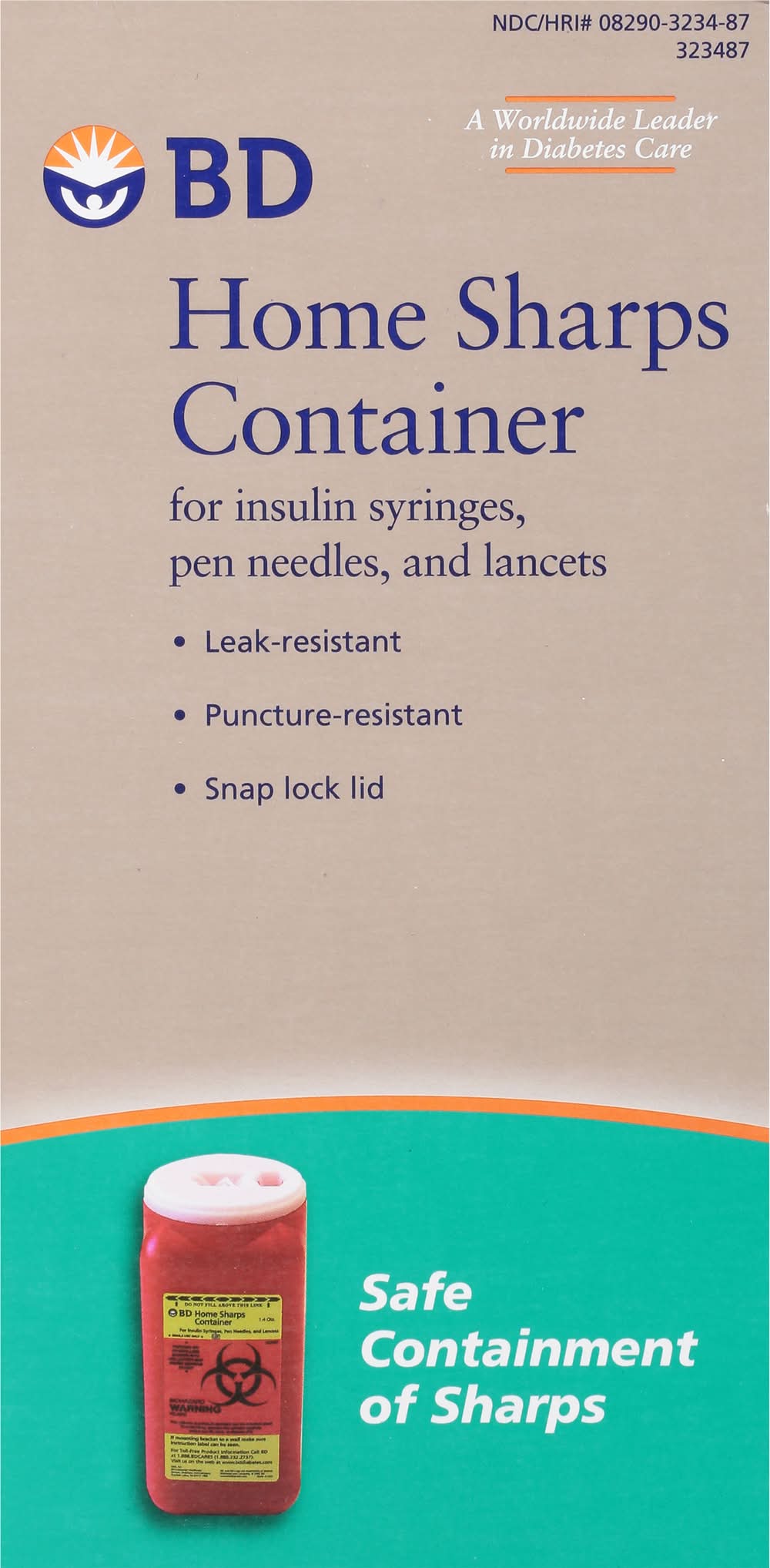Instructions for Use: To discard used insulin syringes and lancets: Drop used insulin syringes and lancets needle-first into opening closest to edge. To remove and discard used pen needles: Do not reshield the needle.Carefully insert pen tip into center opening at a 45-degree angle and push firmly until pen stops.; Rotate pen to the left several times while applying continuous forward pressure to loosen pen needle.; Needle will fall into container after pen is removed. If pen needle gets caught in opening, use pen to push it into the container. Do not use your fingers or hands.; Do not overfill. Seal container with permanent locking lid when full.; Check with your pharmacist to discard properly or follow local trash ordinances where applicable.; Keep container out of reach of children. If disposing of pen needles for someone else, please use a mounting bracket. You can receive this free of charge, by calling BD at 1.888.BDCARES (1.888.232.2737). If mounting bracket to a wall make sure instruction label can be seen. - Directions: Instructions for Use: To discard used insulin syringes and lancets: Drop used insulin syringes and lancets needle-first into opening closest to edge. To remove and discard used pen needles: Do not reshield the needle.; Carefully insert pen tip into center opening at a 45-degree angle and push firmly until pen stops.; Rotate pen to the left several times while applying continuous forward pressure to loosen pen needle.; Needle will fall into container after pen is removed. If pen needle gets caught in opening, use pen to push it into the container. Do not use your fingers or hands.; Do not overfill. Seal container with permanent locking lid when full.; Check with your pharmacist to discard properly or follow local trash ordinances where applicable. Keep container out of reach of children. If disposing of pen needles for someone else, please use a mounting bracket. You can receive this free of charge.