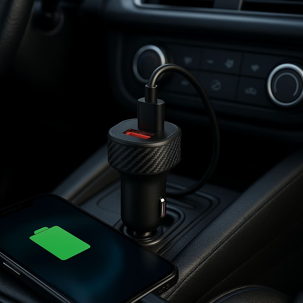 A Leap in Charging Speed, Ideal for rapidly powering up the iPhone 15 / 15 Pro, the high-powered 30W USB-C port delivers charging speeds up to three times faster than standard 5W chargers. Power two phones simultaneously via the USB-C and USB-A ports—an efficient and practical solution for users with multiple devices. Input: DC 12-24V. Type-C output: DC 5V 3A,9V 3A,12V 2.5A,15V 2A,20V 1.5A max 30W. USB output: Quick charge 5V/3A, 9V/2A, 12V/1.5A max 18 watts Rapid-Charge power delivery technology Iis compatible with iPhone 8 or later & Samsung S8, S9, S10, 20, 21,22 series, Note 10/9/8 series Dual output